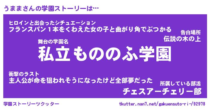 | 男性向けラノベタイトル風あだ名 | 『うままの憂鬱』 |