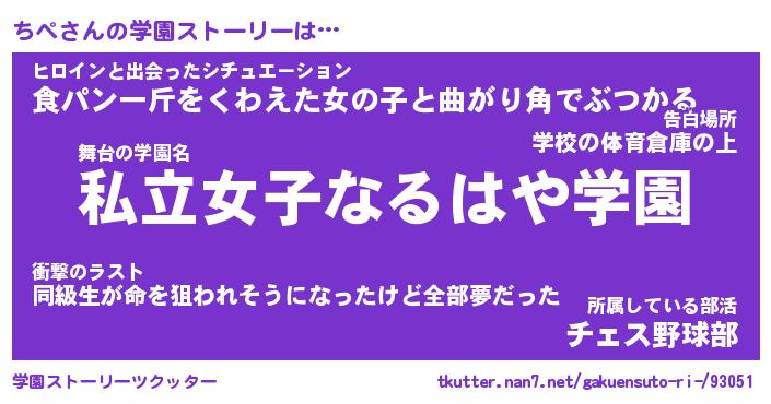| ヘコむあだ名 | 『ちぺにゅー』『牛乳』『ちぺを』 |