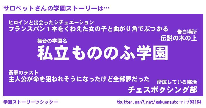 | ファンタジー風あだ名 | 『サロフェル』『エターナルサロペットー』 |