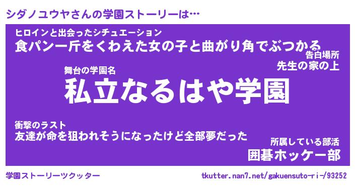 | ヒーロー風カッコイイあだ名 | 『スーパーシダノユウヤ』『黄金騎士シダ』 |