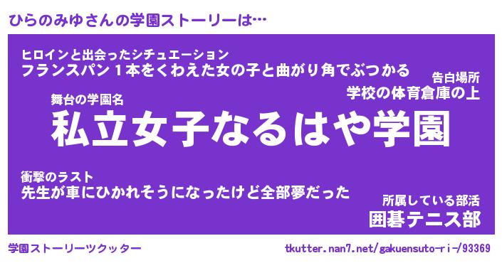 | 伝説のあだ名 | 『不死鳥のスナイパーひらのみゆ』 |