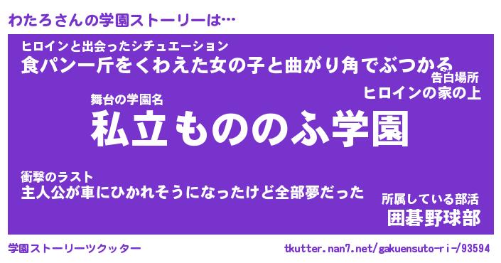 | 男性向けラノベタイトル風あだ名 | 『わたろの憂鬱』 |