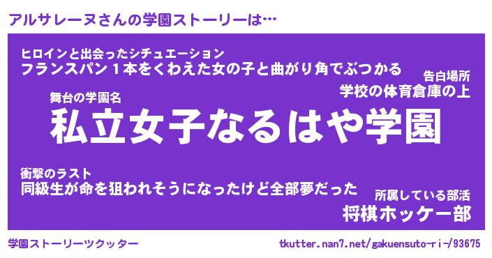 | 男性向けラノベタイトル風あだ名 | 『アルサレーヌアートオンライン』 |