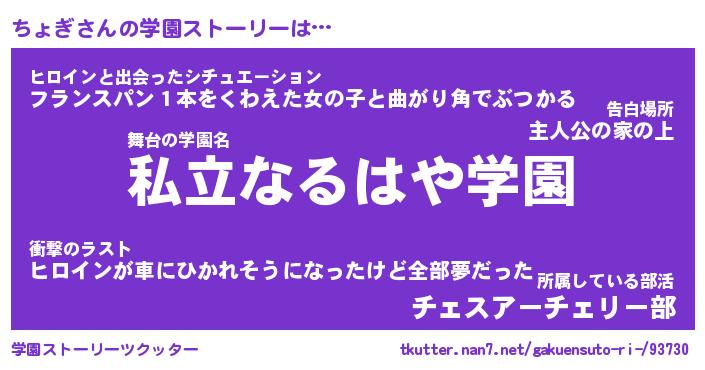 | 女子向けラノベタイトル風あだ名 | 『ちょぎ姫と円卓の騎士』 |