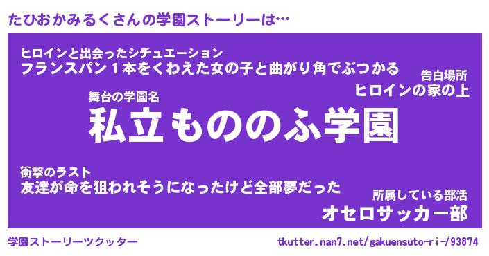 | 男性向けラノベタイトル風あだ名 | 『たひおかみるくの憂鬱』 |
