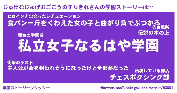 | 男性向けラノベタイトル風あだ名 | 『ジュゲムジュゲムゴコウノスリキレアートオンライン』 |