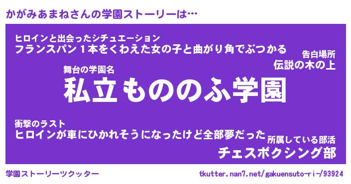 | 男性向けラノベタイトル風あだ名 | 『かがみあまねの憂鬱』 |
