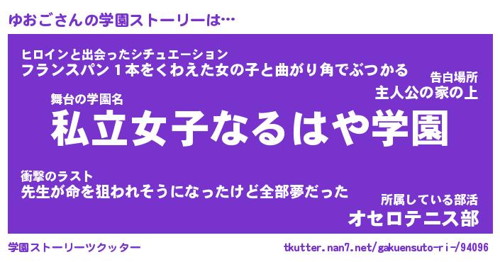 | 女子向けラノベタイトル風あだ名 | 『ゆおご姫と円卓の騎士』『ゆおご恋絵巻』 |