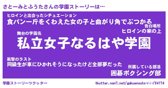 | 女子向けラノベタイトル風あだ名 | 『さとーみとふうた姫と円卓の騎士』 |