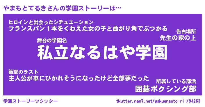 | 女子向けラノベタイトル風あだ名 | 『やまもとてるき姫と円卓の騎士』 |