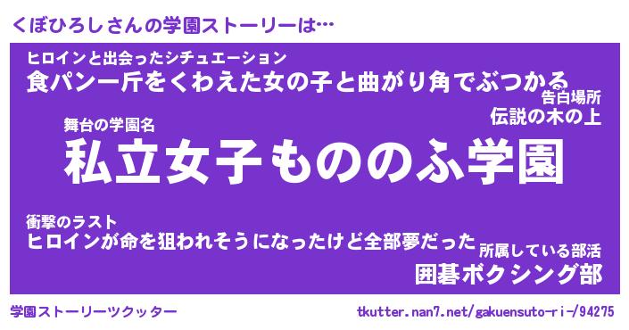 | 番長 | くぼひろし、またの名を・・・!『鋼のシスコンくぼひろし番長』 |