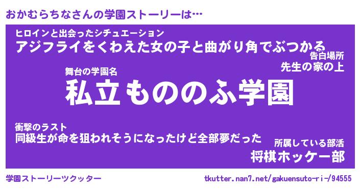 | 男性向けラノベタイトル風あだ名 | 『おかむらちなの憂鬱』 |
