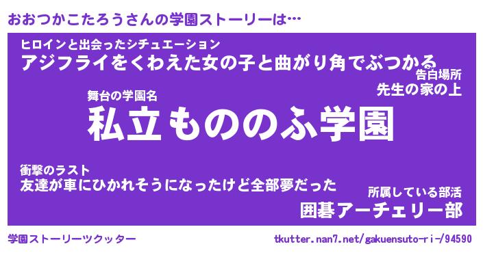 | 女子向けラノベタイトル風あだ名 | 『(仮)おおつかこたろうのやんごとなき事情』 |