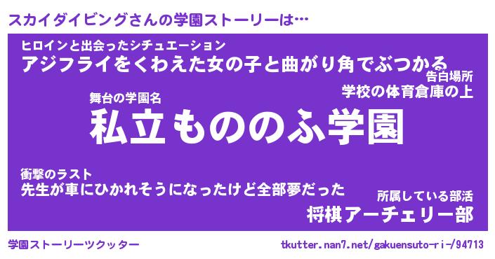 | 男性向けラノベタイトル風あだ名 | 『スカイダイビングの憂鬱』 |