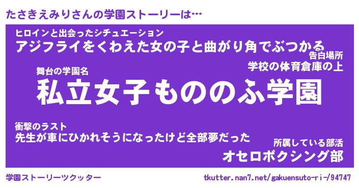 | 番長 | たさきえみり、またの名を・・・!『実はそうでもないたさきえみり番長』 |