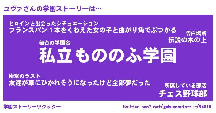 | ヘコむあだ名 | 『ユヴにー』『なまこ酢』『ユヴっぺ』 |