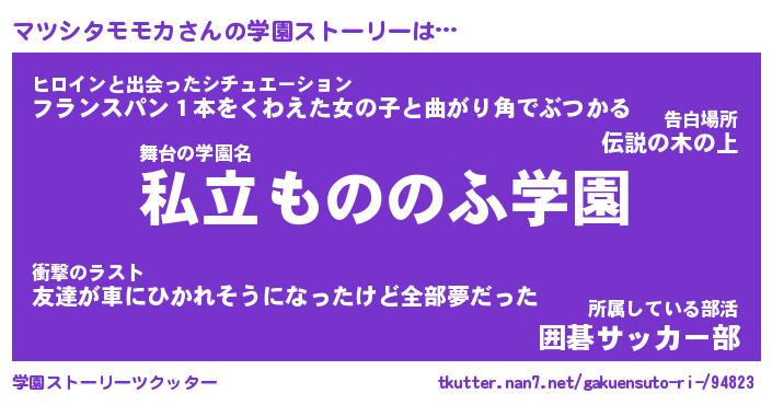 | 男性向けラノベタイトル風あだ名 | 『マツシタモモカの憂鬱』 |