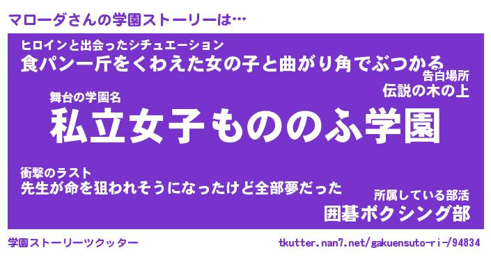 | 意味不明あだ名 | 『ペロリンマローダ』『永久保存マローダ』 |