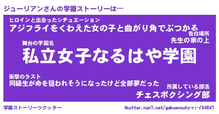 | ヒーロー風カッコイイあだ名 | 『スーパージューリアン』『幻影騎士ジュ』 |