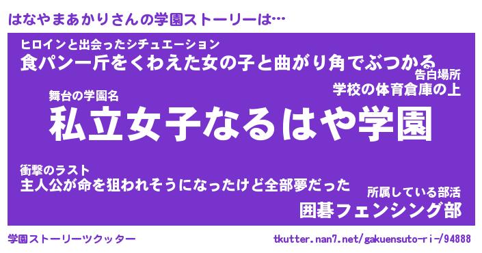 | ファンタジー風あだ名 | 『ハナフェル』『ファントムハナス』 |