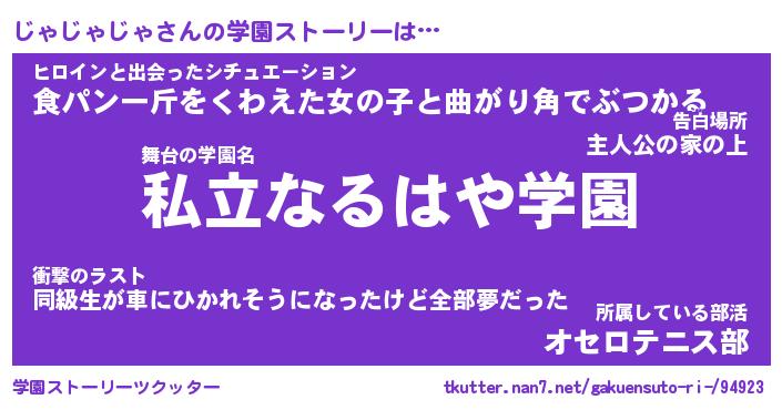 | 男性向けラノベタイトル風あだ名 | 『じゃじゃじゃの憂鬱』 |