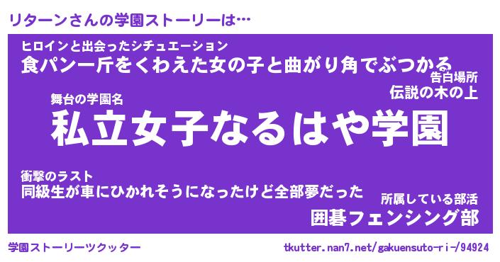 | 意味不明あだ名 | 『ペロリンリターン』『永久保存リターン』 |
