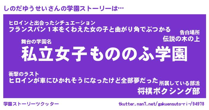 | 女子向けラノベタイトル風あだ名 | 『誰かこのしのだゆうせいを説明してください! ~契約から始まるウェディング~』 |
