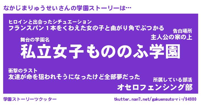 | ヒーロー風カッコイイあだ名 | 『スーパーナカジマリュウセイ』 |