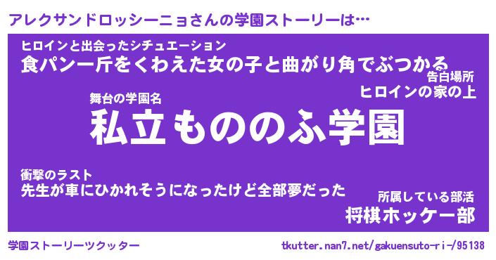 | 女子向けラノベタイトル風あだ名 | 『(仮)アレクサンドロッシーニョのやんごとなき事情』 |