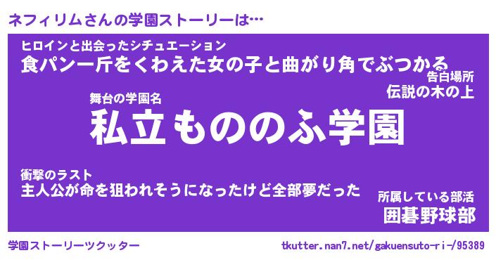 | 女子向けラノベタイトル風あだ名 | 『ネフィリム姫と円卓の騎士』 |