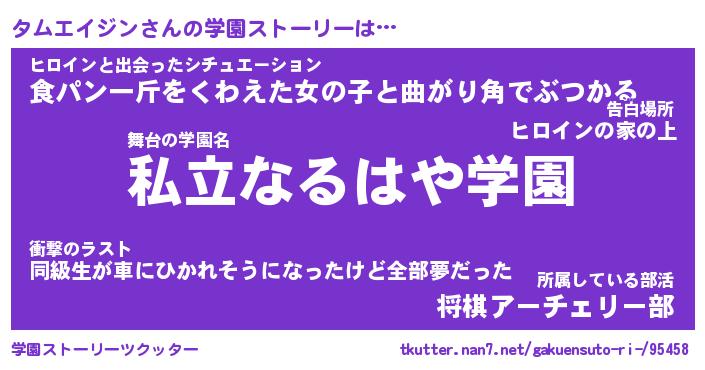 | 男性向けラノベタイトル風あだ名 | 『タムエイジンの憂鬱』 |