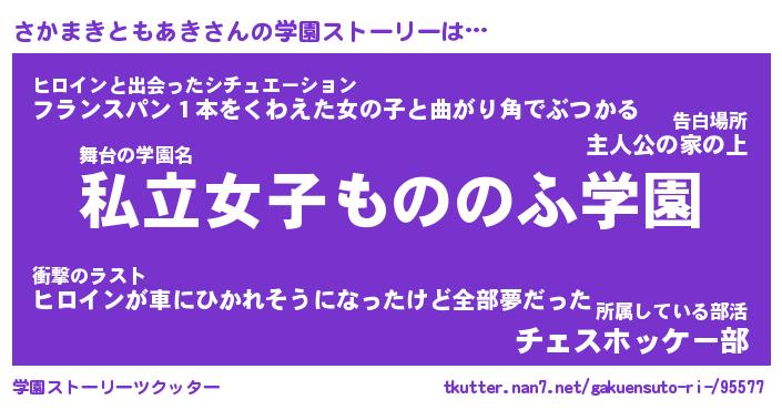 | 女子向けラノベタイトル風あだ名 | 『誰かこのさかまきともあきを説明してください! ~契約から始まるウェディング~』 |