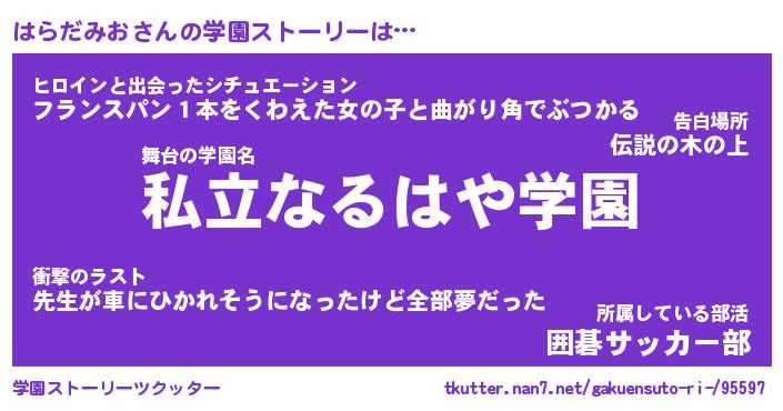 | 告白場所 先生の家の上 …「ふぃぎゅこ」 | 2月17日 06:24 |