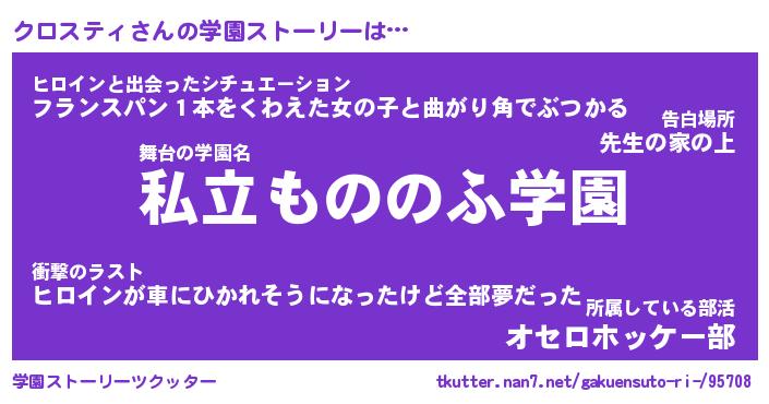 | 女子向けラノベタイトル風あだ名 | 『(仮)クロスティのやんごとなき事情』 |