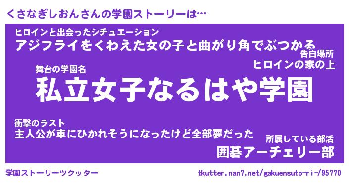 | 女子向けラノベタイトル風あだ名 | 『くさなぎしおん姫と円卓の騎士』 |