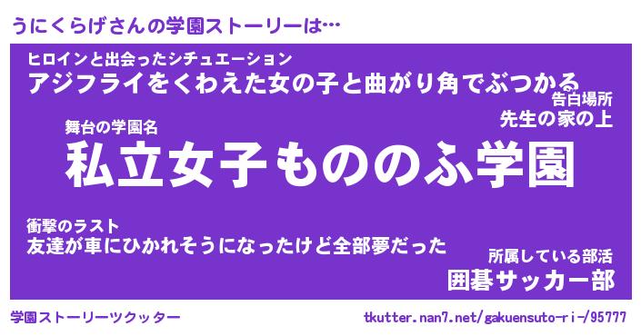 | ファンタジー風あだ名 | 『ウニフェル』『エターナルウニクラゲー』 |