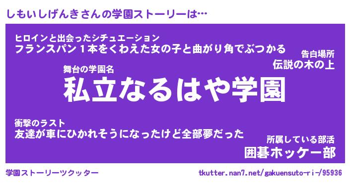 | 男性向けラノベタイトル風あだ名 | 『しもいしげんきの憂鬱』 |