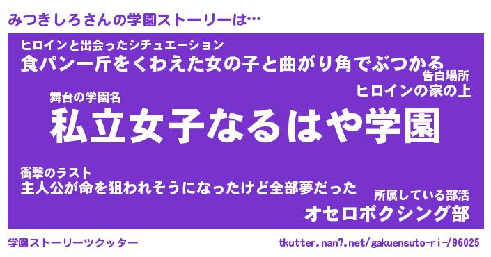 | 女子向けラノベタイトル風あだ名 | 『誰かこのみつきしろを説明してください! ~契約から始まるウェディング~』 |