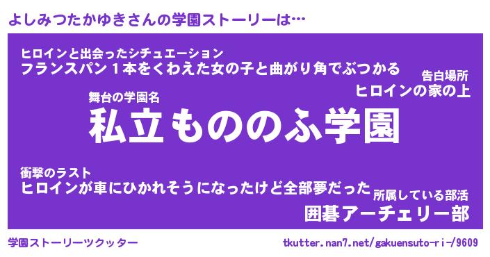 | 男性向けラノベタイトル風あだ名 | 『よしみつたかゆきの憂鬱』 |