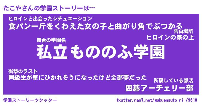 | 男性向けラノベタイトル風あだ名 | 『たこやの憂鬱』 |