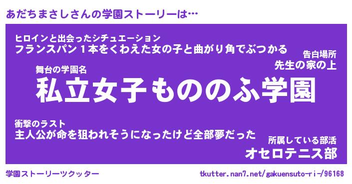 | ヒーロー風カッコイイあだ名 | 『スーパーアダチマサシ』『天弓騎士アダ』 |