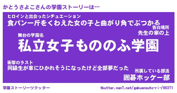 | 女子向けラノベタイトル風あだ名 | 『誰かこのかとうさよこを説明してください! ~契約から始まるウェディング~』 |
