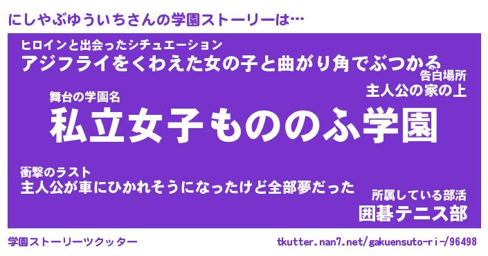 | 女子向けラノベタイトル風あだ名 | 『誰かこのにしやぶゆういちを説明してください! ~契約から始まるウェディング~』 |