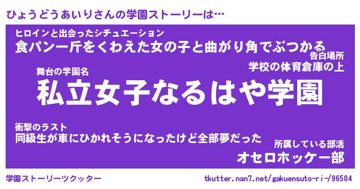 | 伝説のあだ名 | 『不死鳥のスナイパーひょうどうあいり』 |
