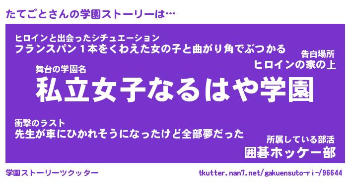 | ファンタジー風あだ名 | 『タテフェル』『エターナルタテゴトー』 |