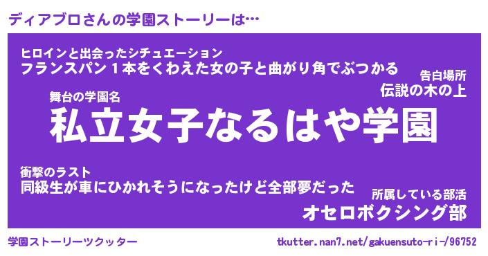 | 女子向けラノベタイトル風あだ名 | 『誰かこのディアブロを説明してください! ~契約から始まるウェディング~』 |