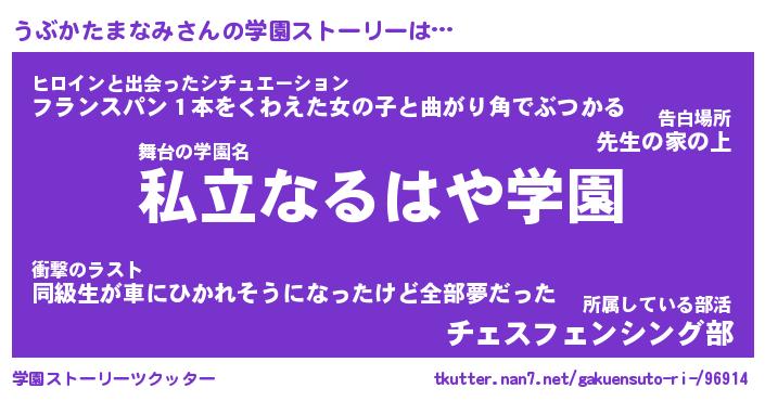 | 男性向けラノベタイトル風あだ名 | 『うぶかたまなみの憂鬱』 |