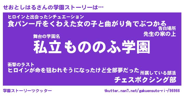 | 男性向けラノベタイトル風あだ名 | 『せおとしはるの憂鬱』 |