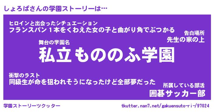 | 男性向けラノベタイトル風あだ名 | 『しょろぱの憂鬱』 |