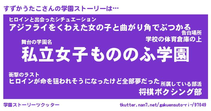 | 男性向けラノベタイトル風あだ名 | 『スズカウタコアートオンライン』 |